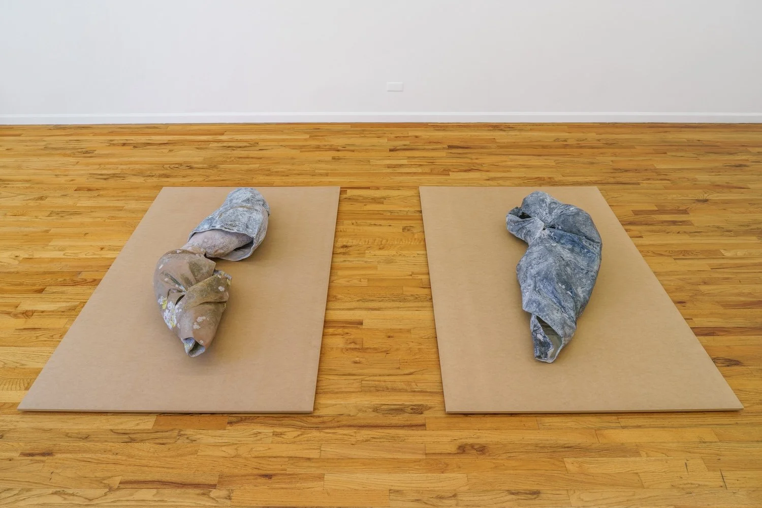 established as the other. Giving up verticality, the sculptures on the floor throughout the exhibition